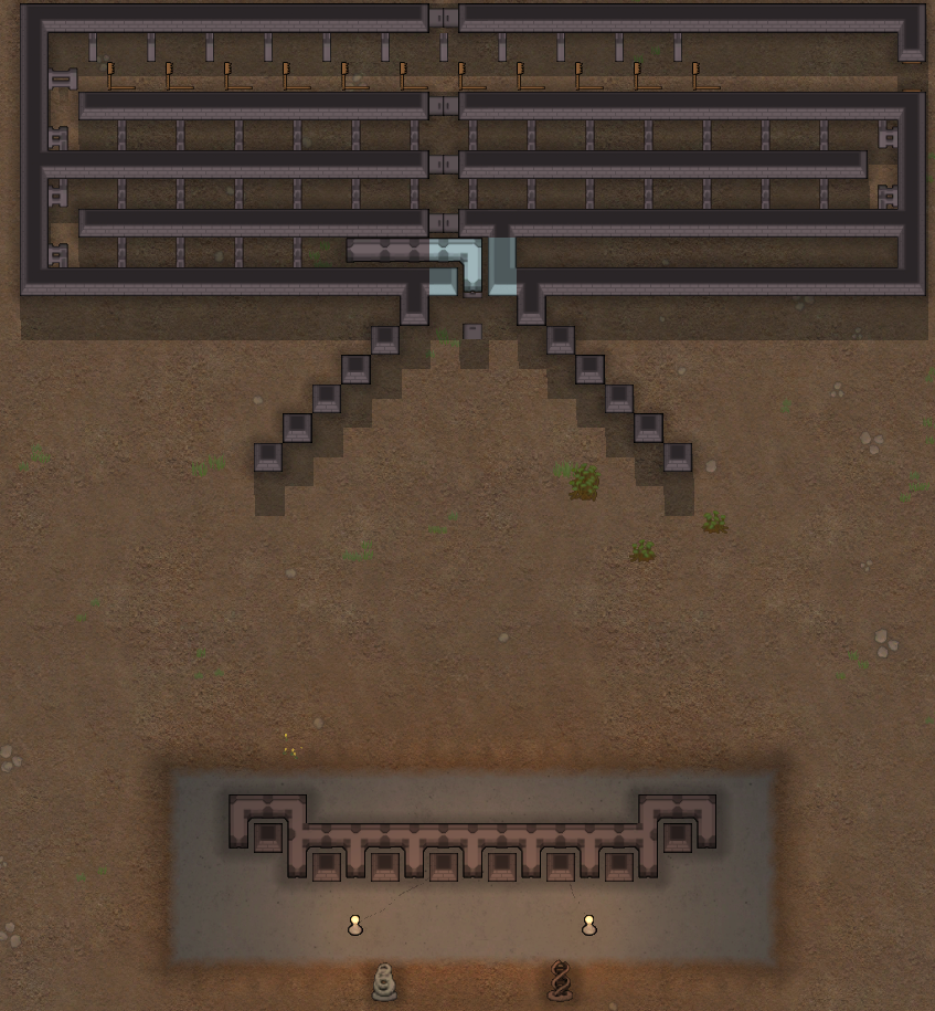 Maybe you'll want a killbox with double wall on the side of raiders to absorb your shoots, and sandbags or chunks in the last corder so raiders don't stay here.